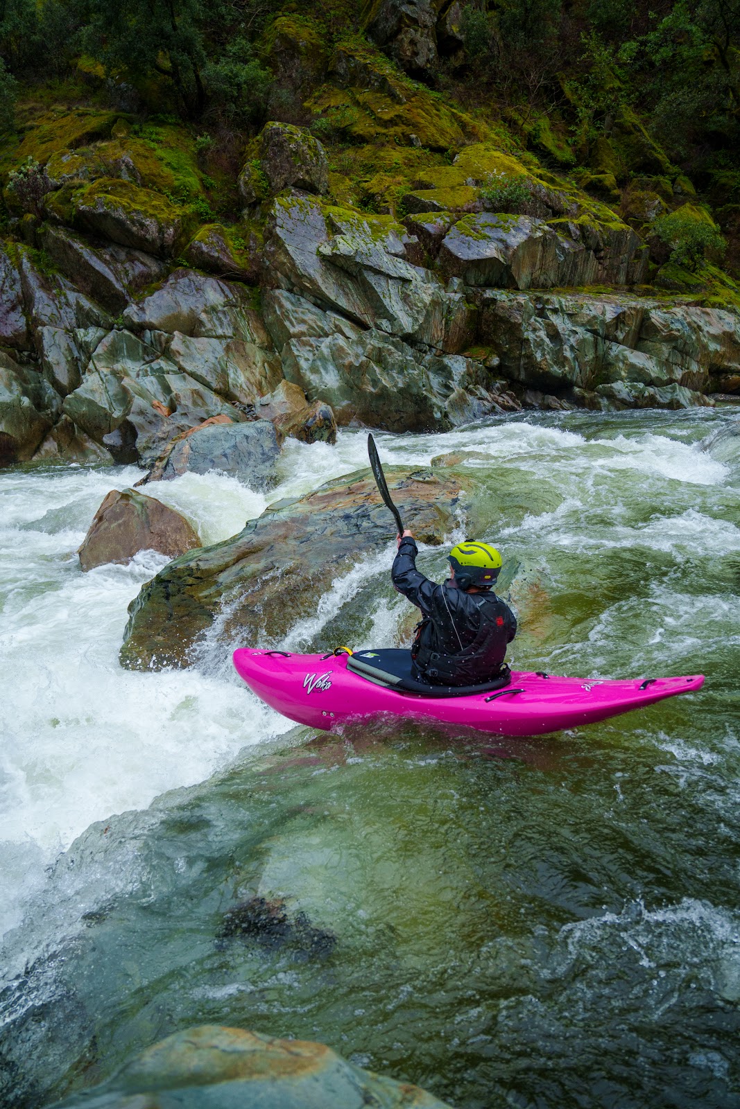 I dropped into Achilles, aiming to eddy out on the left side of the rapid after the boof off the left shoulder. As I took my camera out of my bag, it started to rain harder. My lens was immediately covered with raindrops and I struggled to wipe them off with the microfiber cloth I use to dry my hands. I often self-impose a rush while setting up for photos, not wanting to inconvenience my paddling partners. However, the last time I photo boated, I rushed the setup of a shot and my camera settings were all wrong. I wasn’t shooting in stills mode, my ISO was wacked out, and my shutter was all wrong. So, learning from my past mistakes, I took 30 seconds to double check my settings, get my footing set right, test frame the shot, and check focus. When I was ready, I blew the whistle to signal folks to drop in.